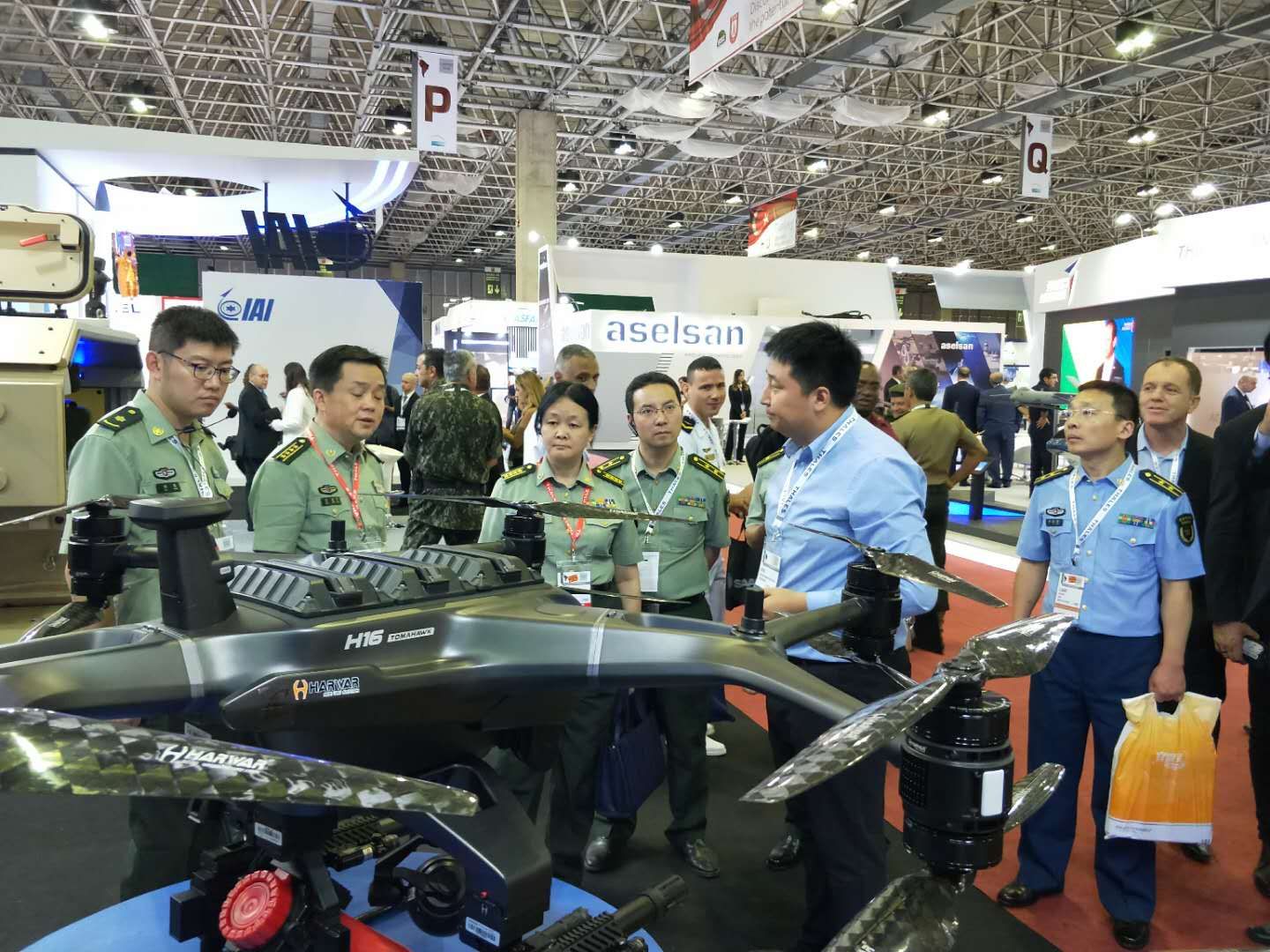 哈瓦特種裝備無人機在展出期間吸引了各國軍政要員的眼球,大家都被哈瓦無人機驚艷的外觀所吸引,駐足觀看哈瓦無人機并像參展人員了解哈瓦無人機的相關信息。