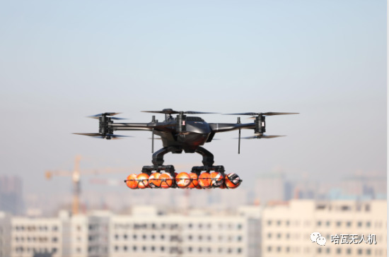 米,作業(yè)溫度為-40°C到+85°C,抗風(fēng)能力7級,飛行高度達5800米,續(xù)航高達60分鐘,單機或集群飛往起火點實施滅火救援,響應(yīng)時間